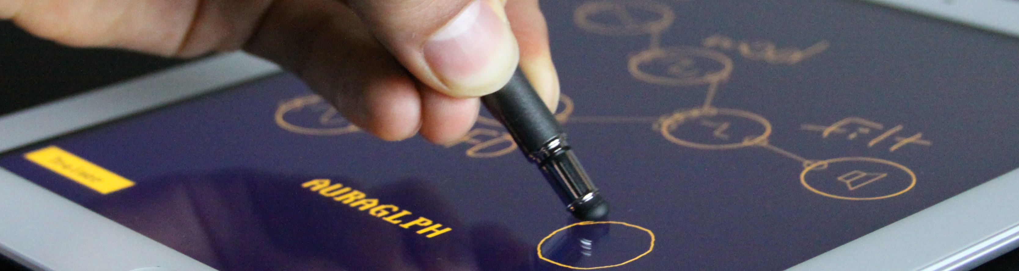 Auraglyph is an audio software programming, composition, and design system for iPad in which processing structures are created with stylus and multitouch input. Via stylus input, users draw a variety of audio and control nodes and the interconnections between them. These nodes are further parameterized by modal handwritten input, from simple numerals to time- and frequency-domain signals. Machine learning-based handwriting recognition is used to analyze the user's stylus strokes, affording a rich vocabulary of symbolic input. Additional nodes are available for creating conventional input/output interfaces, such as on-screen knobs and sliders and MIDI I/O.