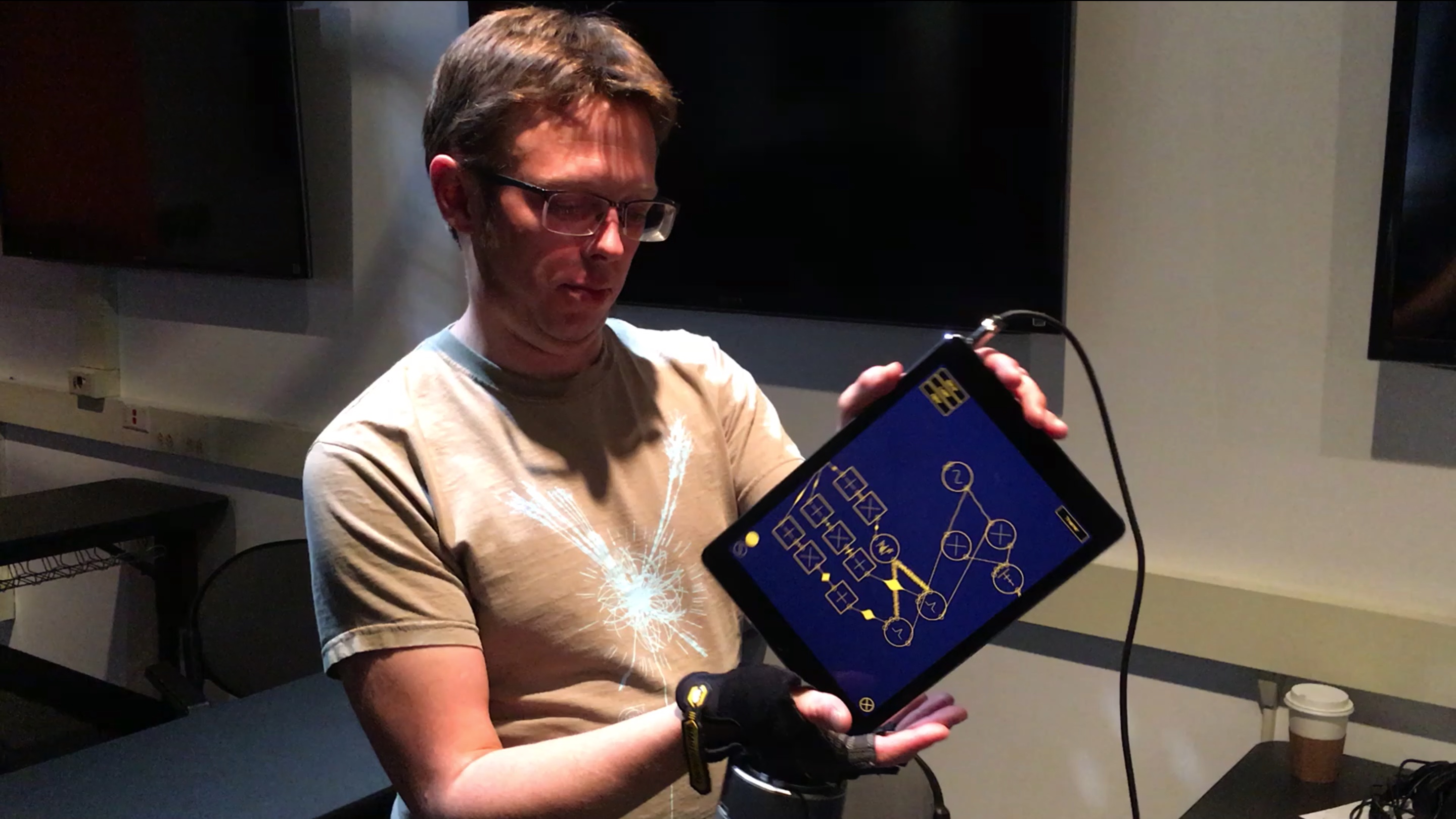 The first part resembled the miniAudicle for iPad study discussed previously. Participants in the study were given iPads with Auraglyph installed or, in some cases, Auraglyph was installed on iPads they owned themselves. They were each given the task of individually creating a “musical statement” using Auraglyph. After one week of using Auraglyph independently, they were asked to demonstrate their results, describe their experiences, provide feedback as to the design of the software, and complete a short survey.