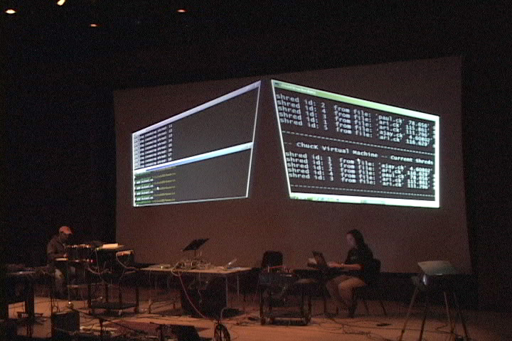 Also of critical importance to the computer musician is the role of interaction. Initially digital music creation involved limited interactivity, as composers would develop an entire music software program and then wait for some time, often overnight, for the computer to generate an audible result. This is an abrupt contrast to pre-electronic music production, by way of acoustic musical instruments; sound can be issued immediately, but dexterity, physical exertion, and extensive training are required for a performer to control the sound in any structured way. Over the years, available computing power has increased, costs have decreased, and physical size has diminished, allowing a diversity of approaches for interactive computer music. Some of these apply human-computer interaction research to the musical domain, employing general-purpose computing interfaces like mice, keyboards, pen tablets, and gaming controllers to design and enact musical events. Related to this, the developing live-coding movement has positioned the act of programming itself as a musical performance (Figure 1.1). Other efforts seek to update acoustic instruments with digital technology, complementing these with sensors and actuators mediated by a computer. Many interactive computer music systems apply both approaches. Crucially, this research and design of interactivity has been necessary to create structures and meanings for computer music. Interactive software is our means to explore the infinite variety of sounds made available to us by the computer.